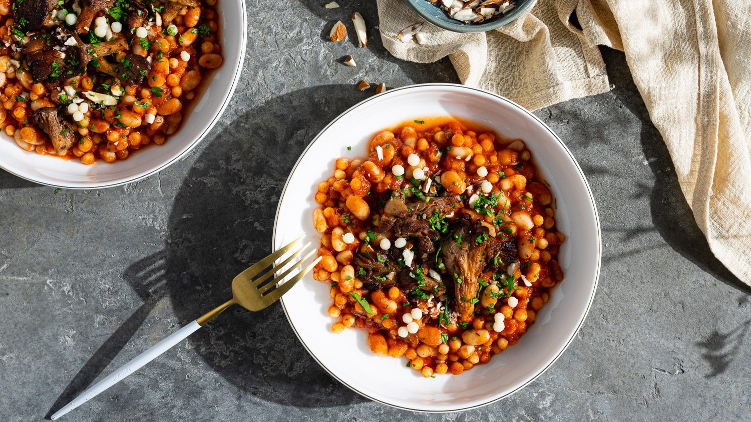 Be sure to try the pearl couscous stew with chicken, pearl couscous in tomato sauce with fried mushrooms or the comfort food variant cheese pearl couscous with kafta and chili butter.